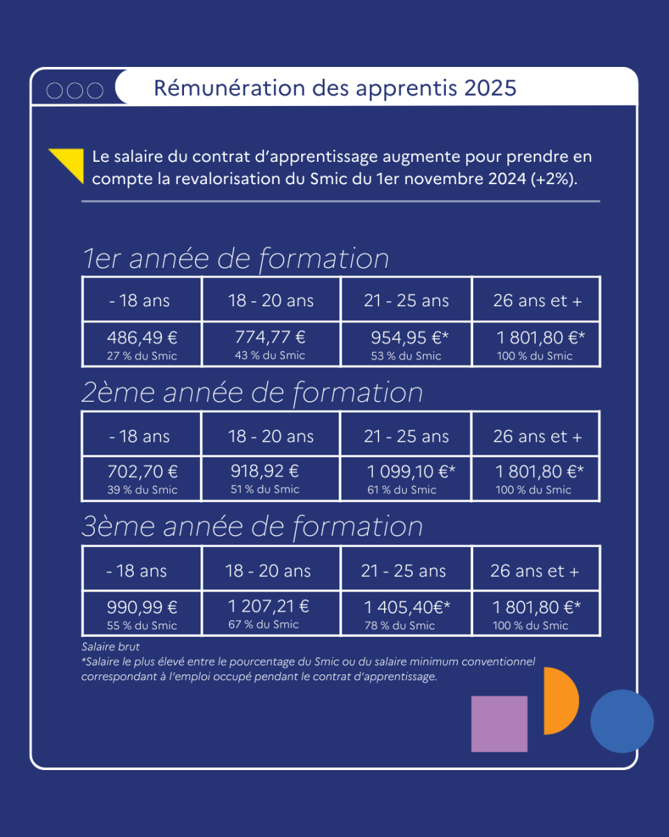 Salaires du contrat d’apprentissage en 2025
